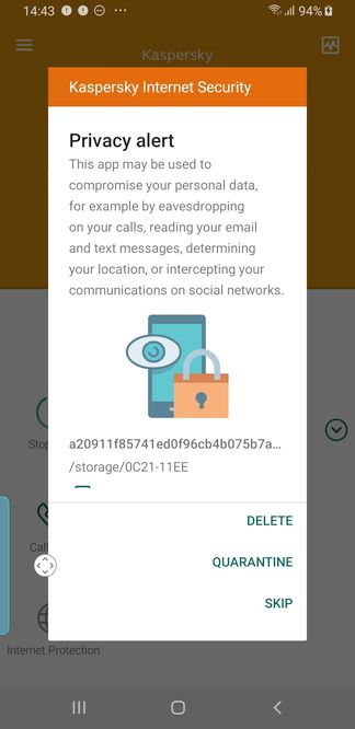 Kaspersky Lab has upgraded its Kaspersky Internet Security for Android with Privacy Alert – a new feature that warns the users if their private information is being monitored via commercially available spyware. While this kind of software is deemed to be legal, the program’s presence is often both unwanted and unknown by the user affected. In some cases, a program’s download page specifically states the software is intended to be used for secretly spying on the user. For this reason, Kaspersky Lab decided to introduce a special alert for such programs, enabling those affected to decide for themselves what they want to do about it.