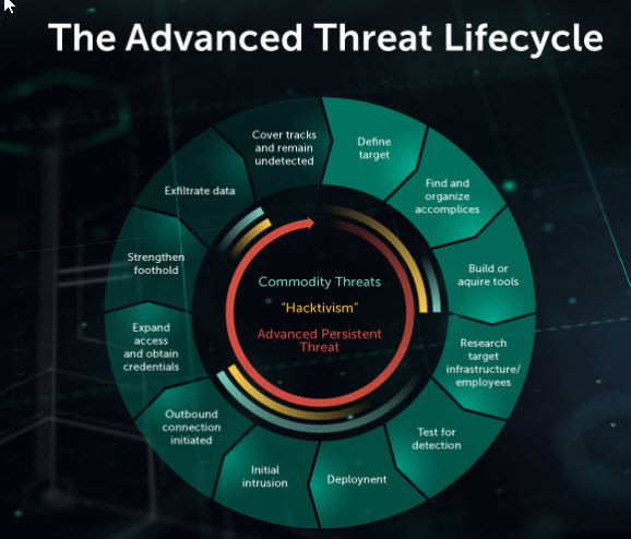 An APT is a long-term attack meant to locate and exploit highly sensitive information. A hacker gets into your computer network and spends a lot of time inside, monitoring movements, key users and data. Hackers work hard to remain undetected and may use sophisticated tools to do so.