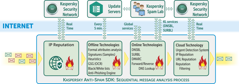 Kaspersky Anti-Spam Software Development Kit (KAS SDK) is the combination of the latest automated Anti-Spam technologies, together with human analysis providing supreme protection against spam and phishing and ensuring instant reaction to new spam outbreaks.