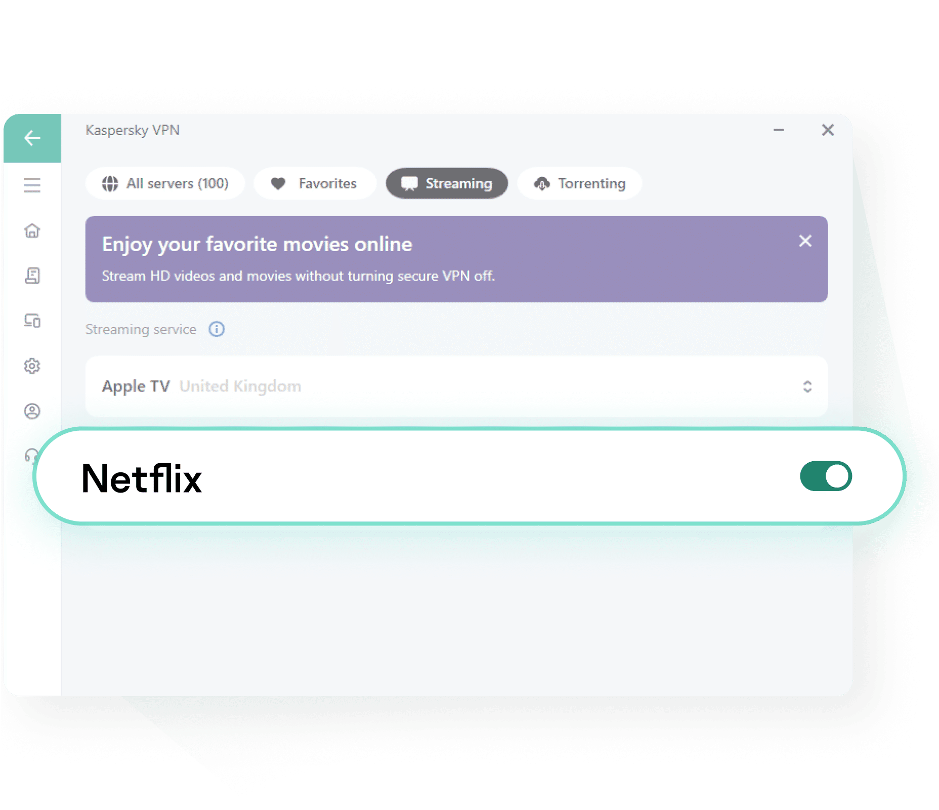 Internet restrictions don’t need to affect your freedom online. One benefit of Kaspersky VPN is that from anywhere in the world, you can still enjoy the social media, streaming, and news you love – like TikTok, Netflix, and the BBC.