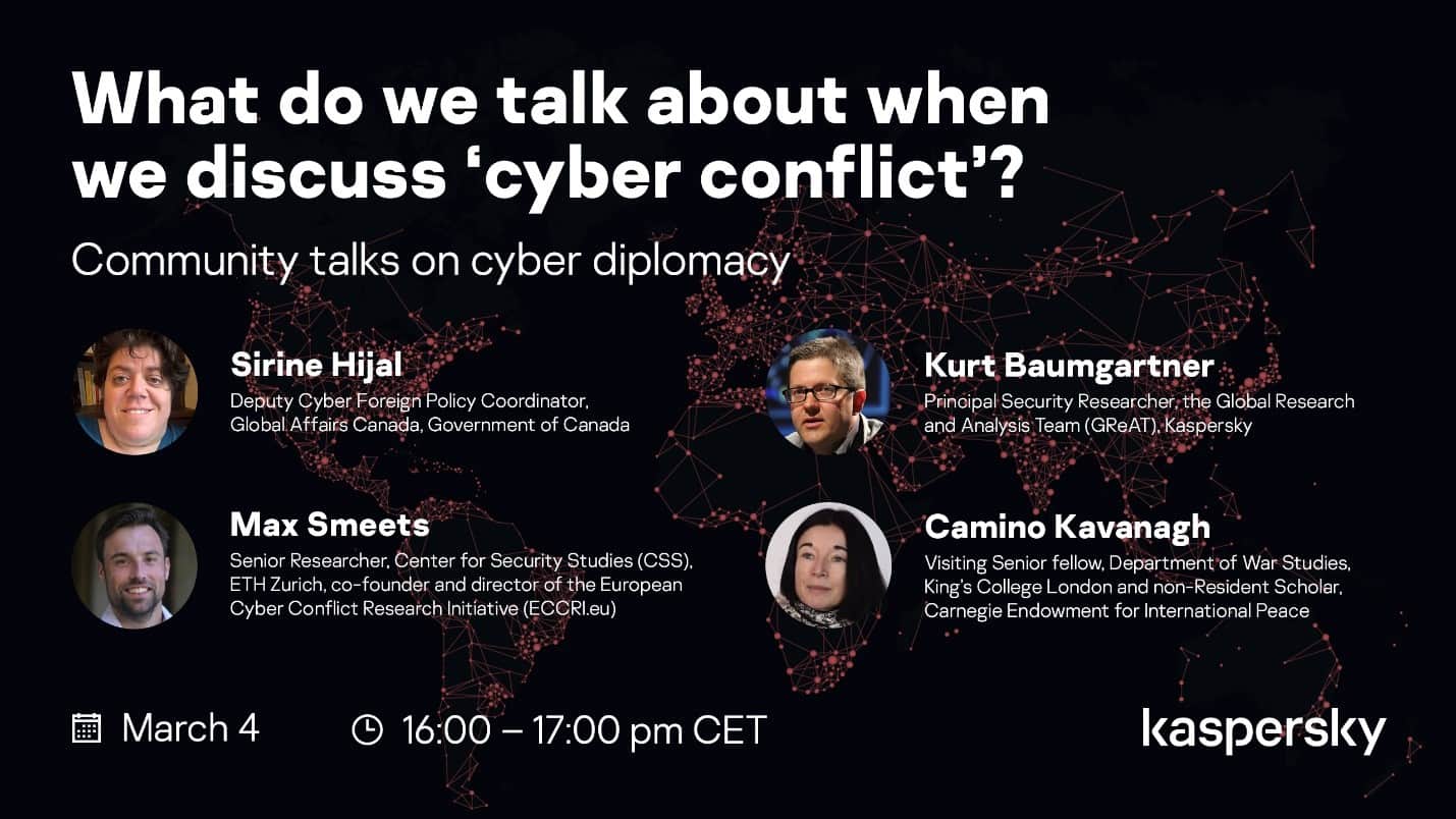 To this, Kurt added that when we discuss ‘cyber conflict’, we should keep in mind that this usually happens not in an exclusive domain, in a vacuum, and additionally he agreed with the game metaphors by adding that identifying the root cause of cyber conflict often results in a separate discussion of geopolitical games rooted in the various motivations and interests of nations. Sharing also a perspective from cybersecurity research, Kurt said that we have seen large operations, but all of this activity can exhibit marks of espionage, theft on a massive scale, and both destruction and disruption. To be better prepared for conflict resolution and settlement, we need national points of contacts (PoCs) for reporting incident-related data so non-state actors know whom to contact and with whom to cooperate, and ideally these PoCs should be neutral from geostrategic competition/geopolitics to act as firefighters in the event of a significant cyber incident. Cybersecurity researchers, the technical community, and relevant government bodies need to have secure channels of communication, and clear paths to resolution and stability where, again, they can remain neutral as much as possible.
