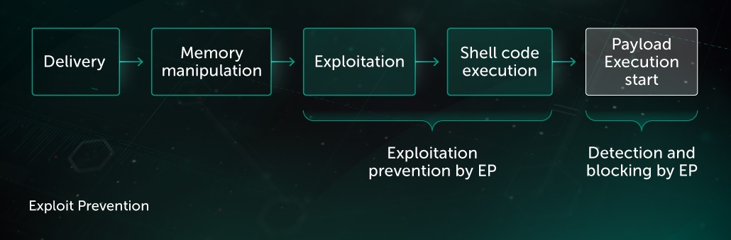 Exploit Prevention (EP), part of Kaspersky Lab’s multi-layered, next generation protection, specifically targets malware that takes advantage of software vulnerabilities. It was designed to add an additional layer of protection for the most frequently targeted programs and technologies. EP provides an efficient and non-intrusive way for blocking and detection of both known and unknown exploits. EP is an integral part of Kaspersky Lab’s behavior-based detection capabilities.