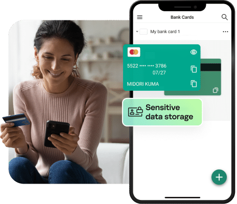 Safely store sensitive documents like scanned passports and IDs, bank cards, and PINs in your private vault – where your important information is protected by our advanced, bank-grade encryption.