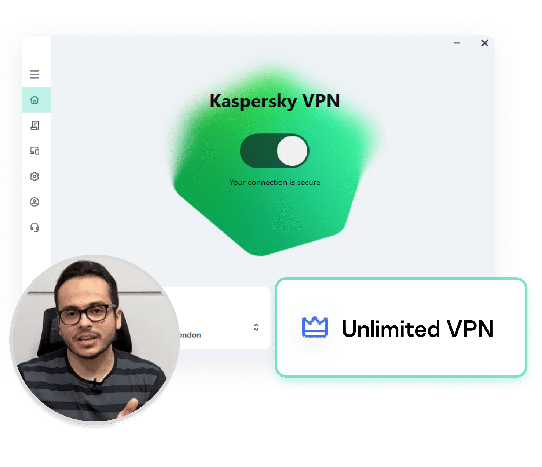 Get all the benefits of Kaspersky VPN, either by itself or as part of the Kaspersky Premium security plan.