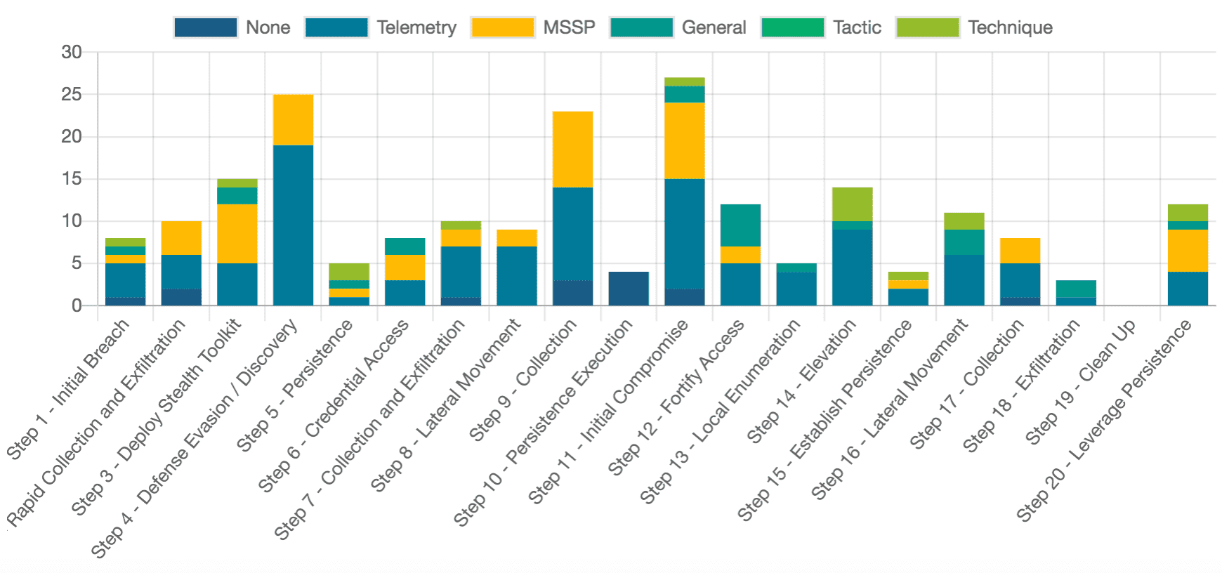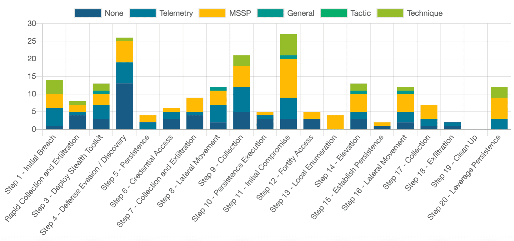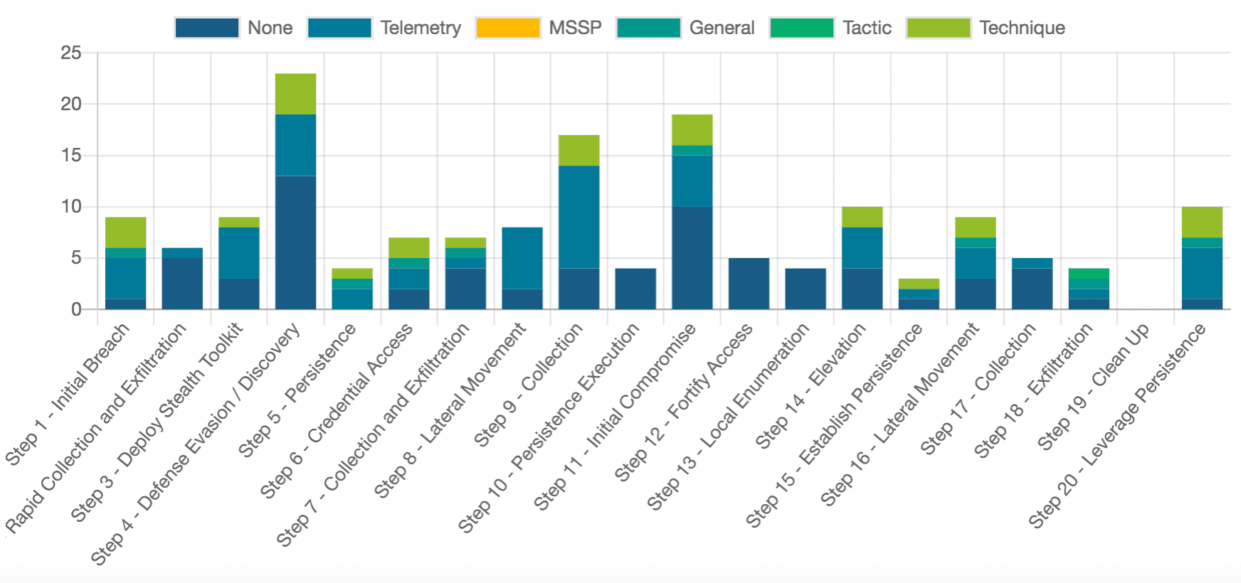 In conclusion, the ATT&CK Evaluation results should be viewed from the perspective of your own security goals and infrastructure features. Having said this, a good security solution should demonstrate the widest possible coverage of attack techniques and attack stages (steps, tactics) - and the ATT&CK Evaluation is an effective way of visually assessing this.