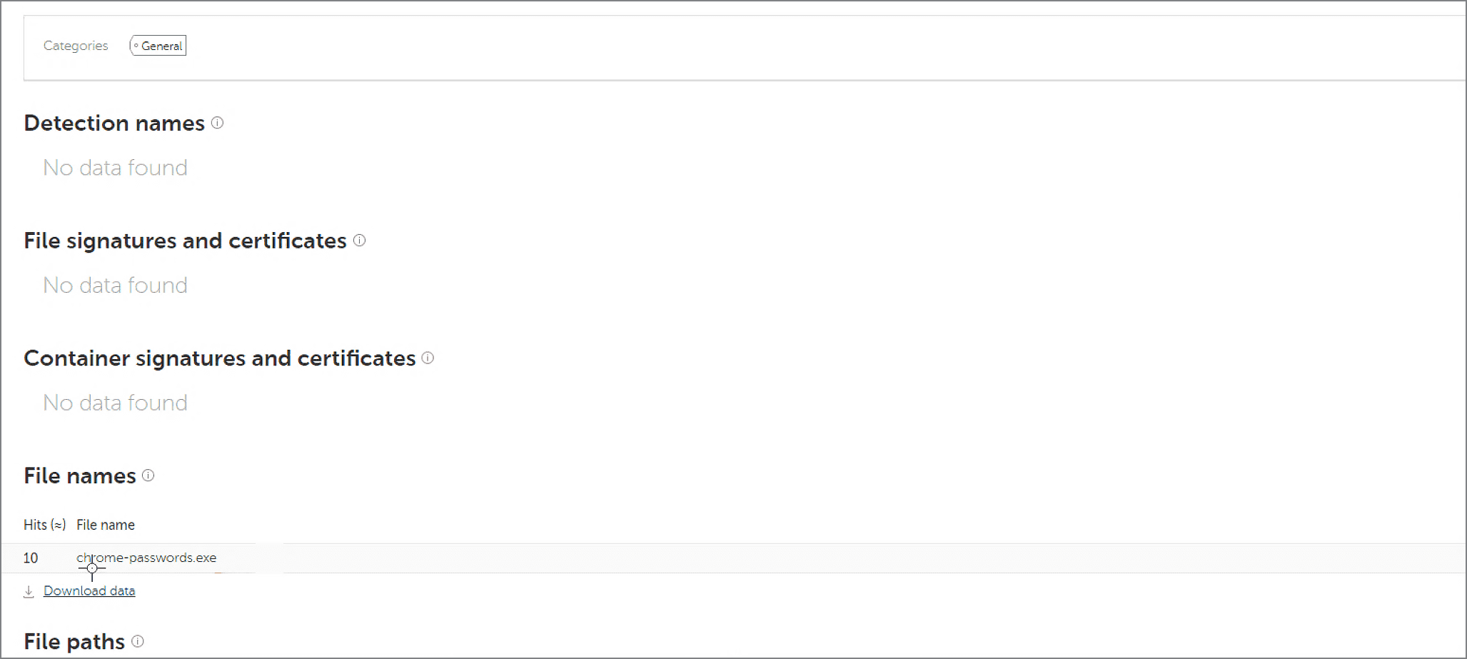 In this case, our Threat Intelligence Portal can help (by the way, any user of Kaspersky EDR can make 1,000 free requests to this service). When we search for the MD5 hash of accesschk.exe in this portal, we can find the real name of the program: chrome-passwords.exe.