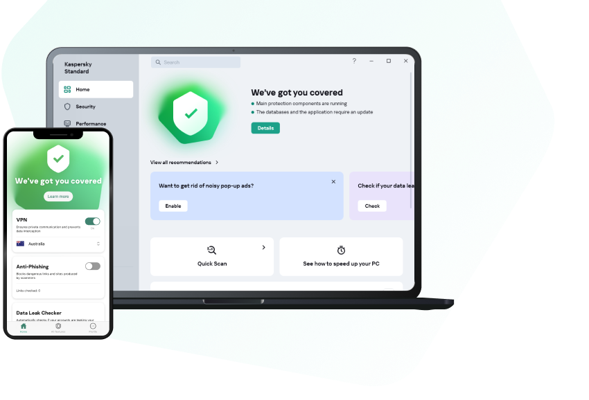 Update to Kaspersky Standard for instant access to improved protection and more features.